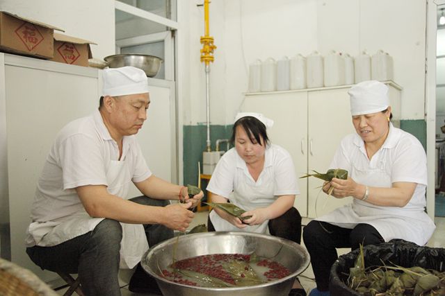 汇福集团组织志愿者为职工包粽子